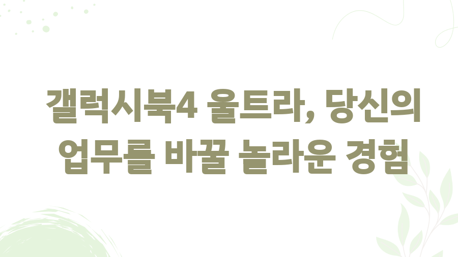 "이 포스팅은 쿠팡 파트너스 활동의 일환으로, 이에 따른 일정액의 수수료를 제공받습니다." 최고 성능과 휴대성을 자랑하는 갤럭시북4 울트라, 당신의 업무와 엔터테인먼트를 한 단계 끌어올리세요! 16인치의 아름다운 Dynamic AMOLED 2X 디스플레이는 120Hz 주사율로 부드러운 영상과 놀라운 색감을 선사합니다. 강력한 Intel Core™ Ultra 프로세서와 풍부한 저장 공간은 어떤 작업도 거뜬히 처리하며, AKG 사운드와 Dolby Atmos의 조화는 몰입감 넘치는 오디오 경험을 제공합니다. 휴대성까지 갖춘 갤럭시북4 울트라로 생산성과 여가 시간을 모두 만끽하세요. 지금 바로 갤럭시북4 울트라의 매력에 빠져보세요! 이제부터 갤럭시북4 울트라의 놀라운 기능과 장점들을 자세히 알아보겠습니다. ..